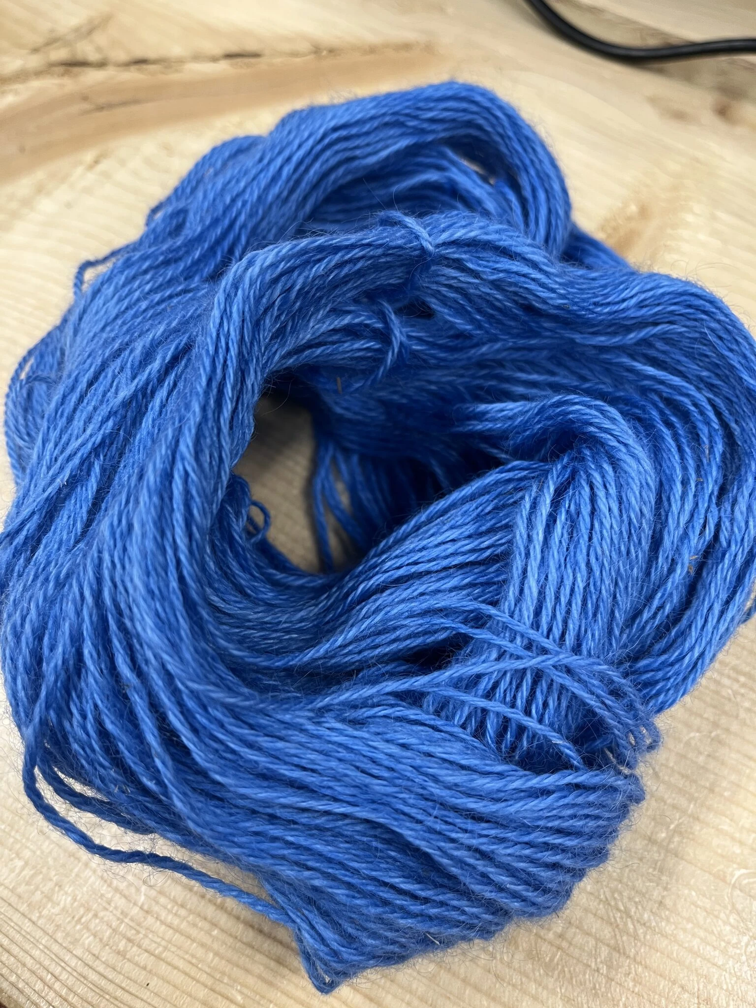 Käsin värjätty lanka voi päästää väriä.