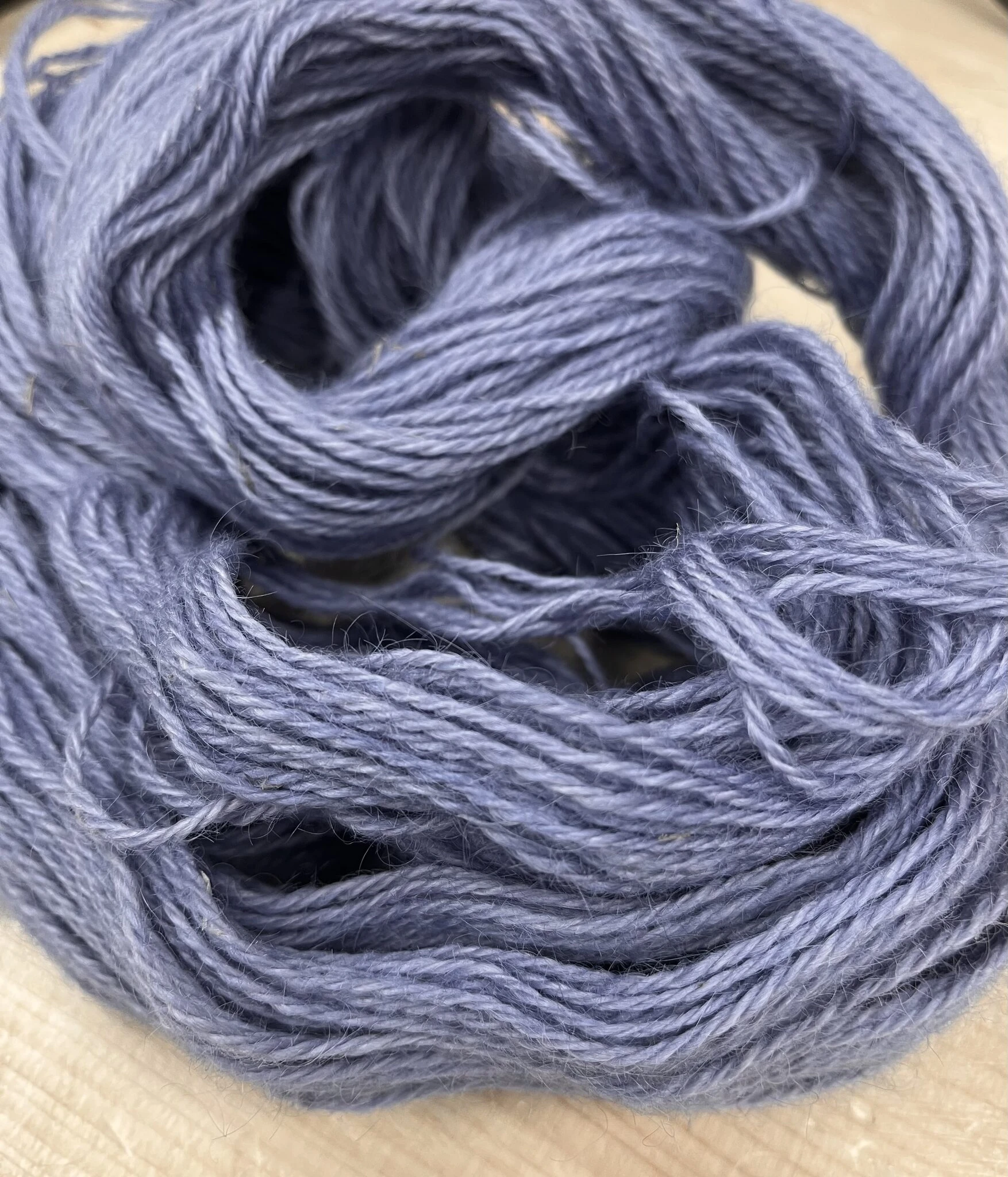 Käsin värjätty lanka voi päästää väriä.