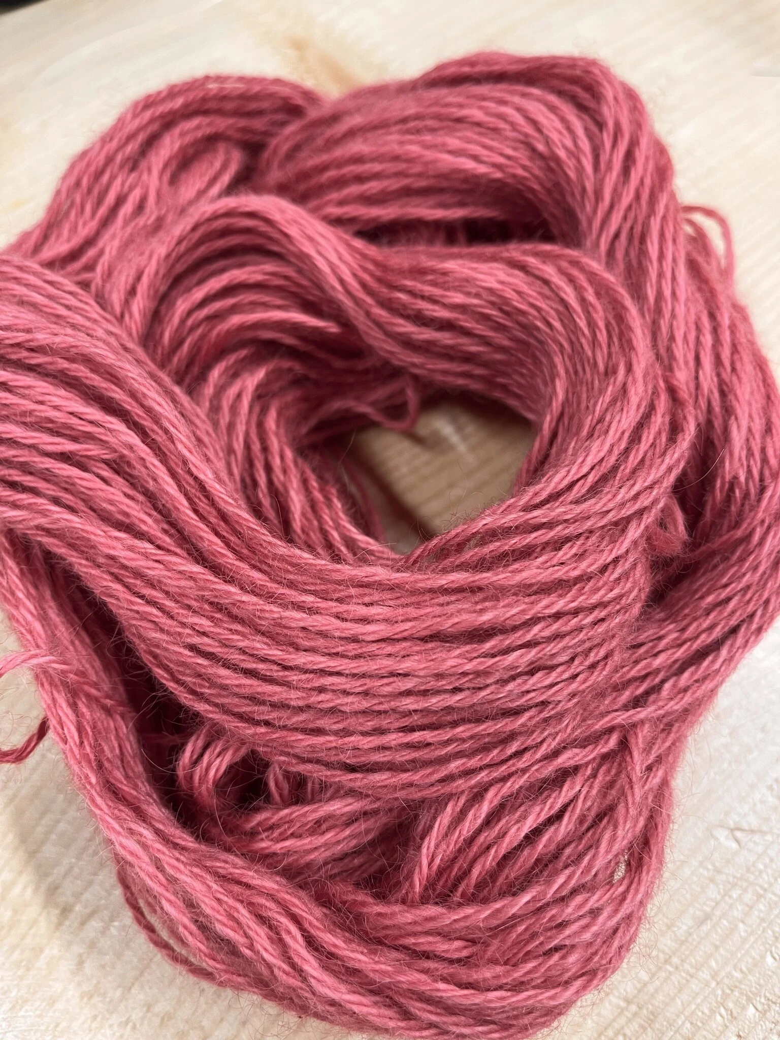 Käsin värjätty lanka voi päästää väriä.