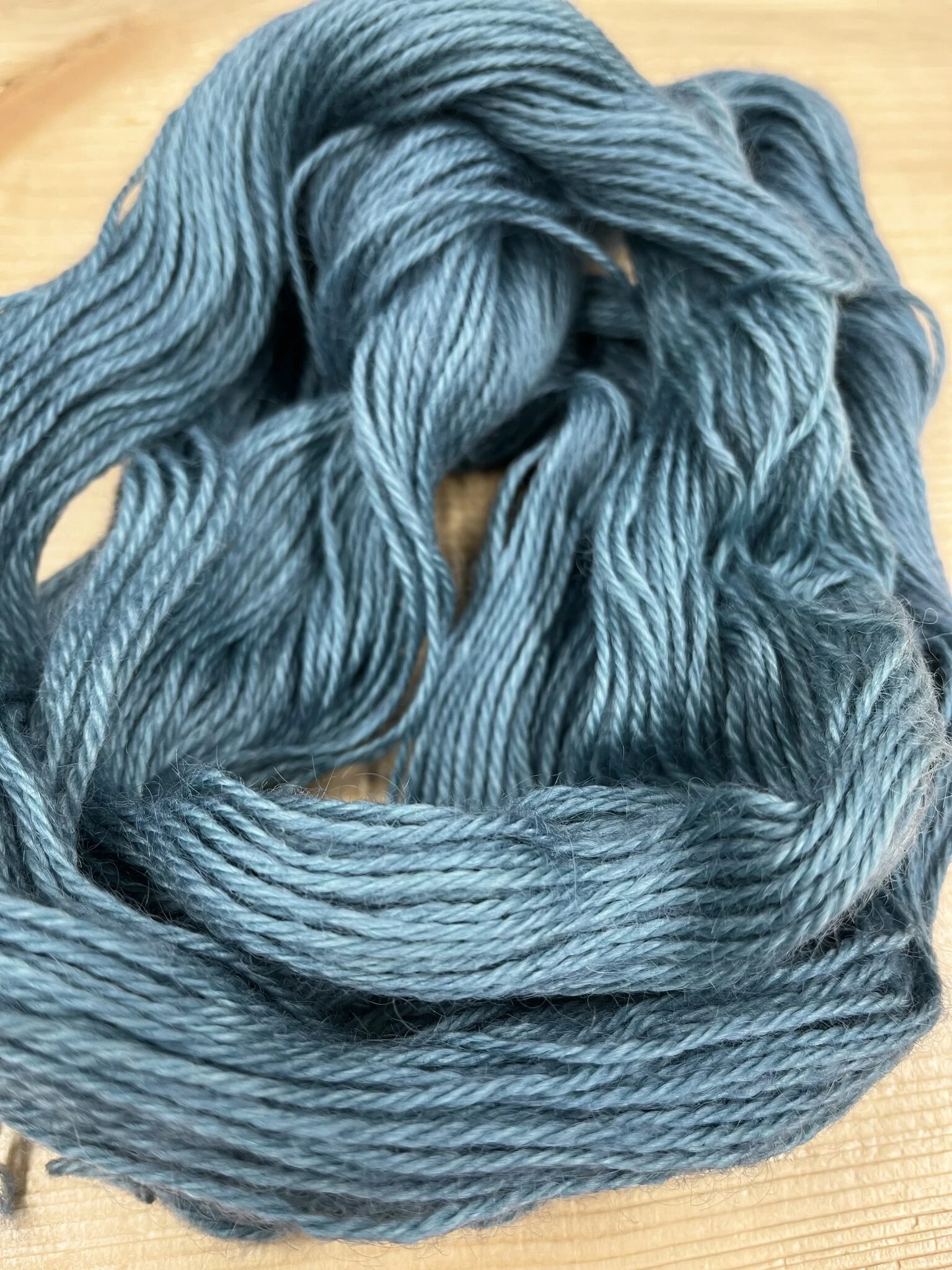 Käsin värjätty lanka voi päästää väriä.