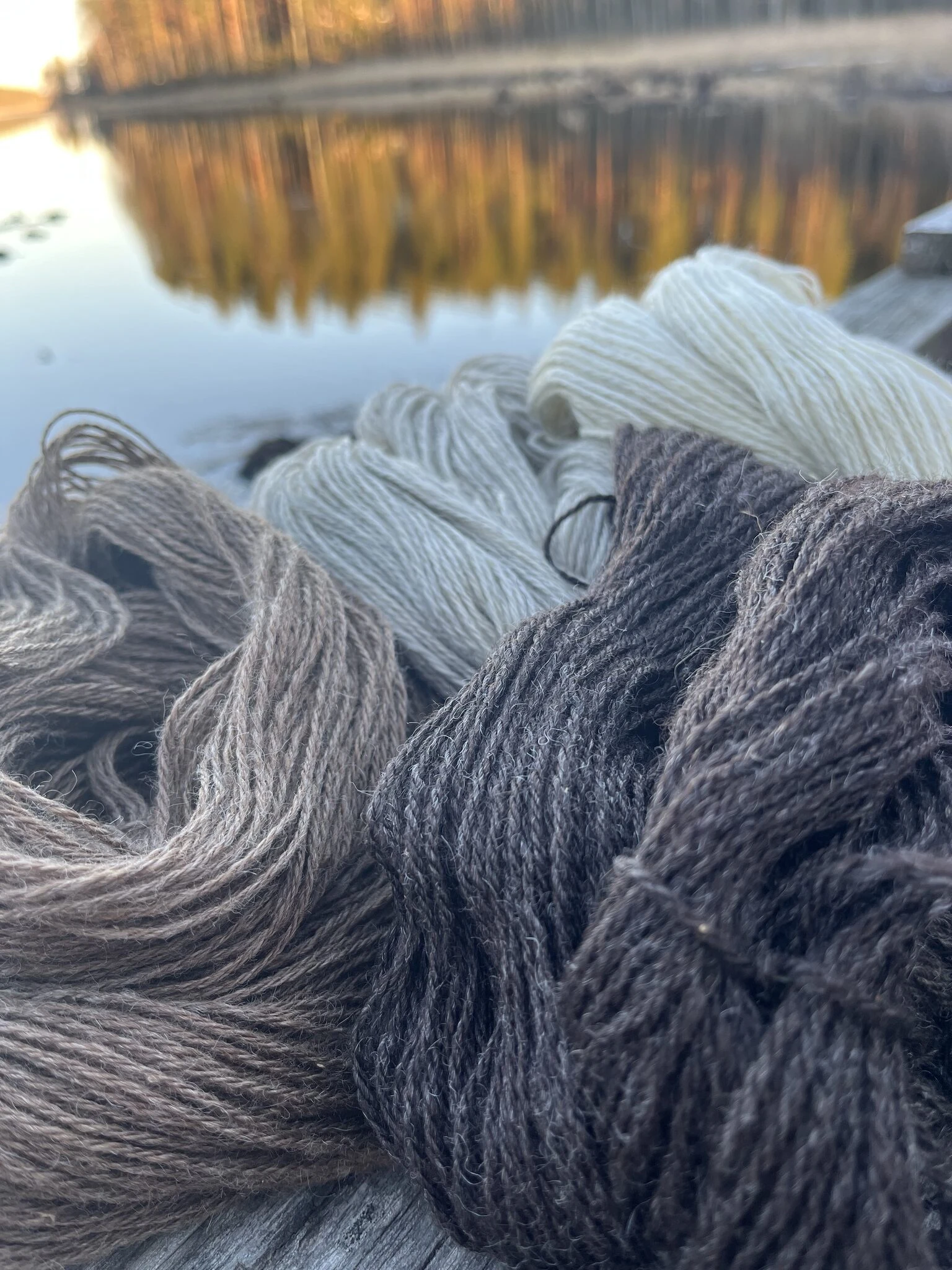 kainuunharmaksen villa on usein silkkistä ja korkeakiiltoista. Saimaksella kehrätyt erät ovat pieniä. Jokaisessa erässä tuntuu kunkin lampolan lampaiden villan uniikki tekstuuri. Tutustu ja ihastu.